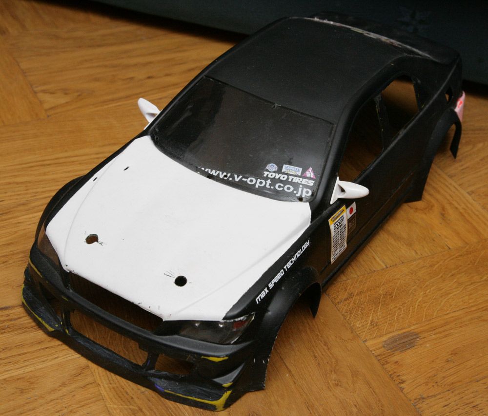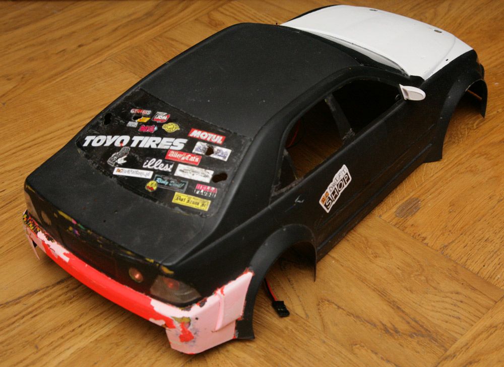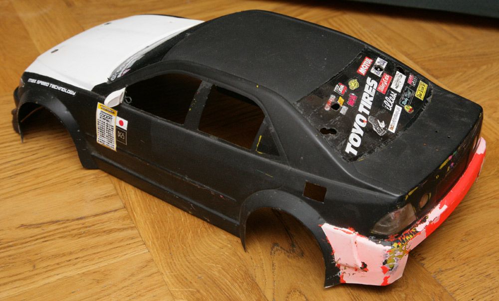 Karoseria ABC Hobby Lexus LSStan bardzo dobry, nigdzie nie jest pęknięta. Brak otworów na słupki, zrobiony wydech z tyłu i grill z przodu, przyciemnione szyby, stickerbomb z tyłu.