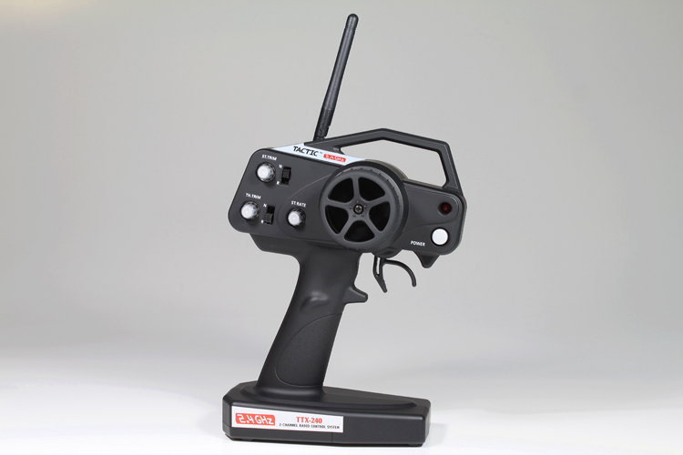 2-kanałowy nadajnik pistoletowy Tactic jest wyposażony w funkcję regulacji promienia skrętu kół, trymery skrętu i gazu oraz funkcję odwracania (rewersu) kanału skrętu.