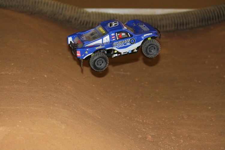 Podczas skakania na pagórkach o ubitej nawierzchni model zachowywał się przewidywalnie, ale w przypadku skoków z mało przyczepnych wzniesień model lądował z opadającym przodem. Udawało mi się wyeliminować to zjawisko przez dodawanie gazu w powietrzu. Ta metoda sprawdzała się przez godzinę i każdy skok był przewidywalny. Po upływie półtorej godziny przy skakaniu i lądowaniu z maksymalnie wciśniętym spustem pękł kielich tylnego dyferencjału. Kiedy pakowałem swoje rzeczy po zakończeniu jazdy zastanawiałem się nad osiągami i właściwościami jezdnymi, jakie model zaprezentował na trudnym torze, i byłem zadowolony z nagranego materiału wideo.