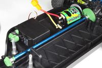Miejsce na pakiet zostało wygospodarowane po lewej stronie podwozia wzdłuż osi modelu. Przednia część plastikowego mocowania jest wsuwana w ramkę zabezpieczającą, natomiast tylna część mocowania jest zabezpieczona przy użyciu jednej spinki. Razem z modelem są dostarczane dwie kostki piankowe o różnych rozmiarach, które umożliwiają odpowiednie zamocowanie pakietu. Pakiet można umieścić bliżej przedniej lub tylnej części podwozia, dzięki czemu można dostosować zachowanie modelu podczas jazdy.