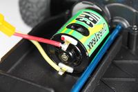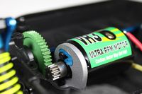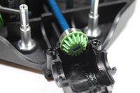 Po pewnym czasie doszedłem jednak do wniosku, że w tym przypadku niska masa jest ważniejsza niż pancerna wytrzymałość. Przetestowanie modelu jest jedynym sposobem upewnienia się w tej sprawie, ale można się domyślić, że plastikowe zębatki są wystarczająco wytrzymałe w stosunku do zastosowanego silnika i regulatora. Problemy mogą się pojawić w przypadku zainstalowania silnika bezszczotkowego.