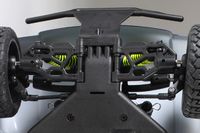 Zawieszenie przypomina konstrukcje znane z wielu modeli typu buggy i truggy w skali 1:8. W przednim zawieszeniu zastosowane górne i dolne wahacze w kształcie litery A, natomiast w tylnym zawieszeniu zastosowano dolne wahacze w kształcie litery H oraz górne drążki gwintowane. Zawieszenie można regulować w dużym zakresie.