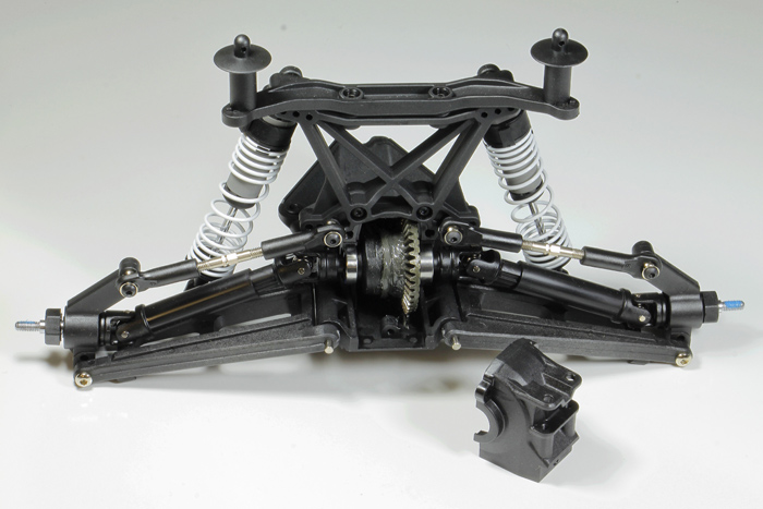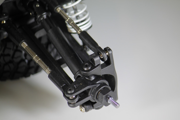 Zawieszenie można w pełni regulować przy użyciu narzędzi dołączonych do modelu. Klucz zawarty w zestawie umożliwia dostosowanie zbieżności kół oraz kąta nachylenia przednich i tylnych kół. Stalowe drążki o grubości 4 mm powinny zapewnić wręcz pancerną wytrzymałość.