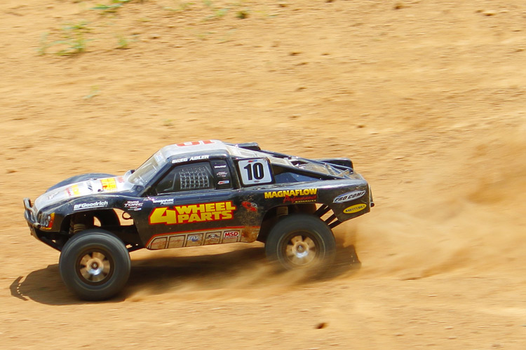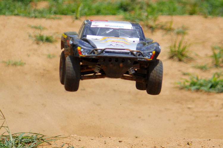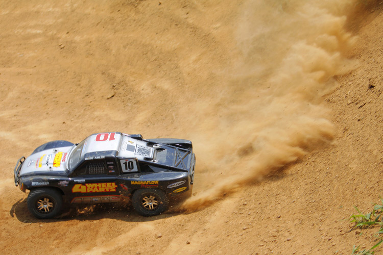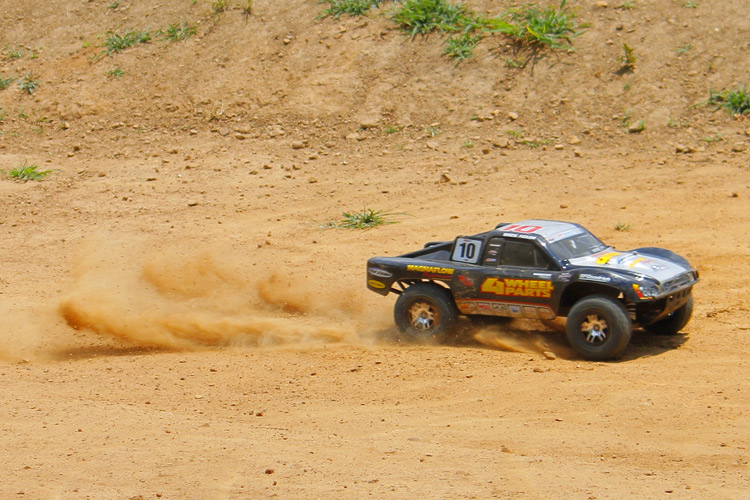 Przez większość czasu model był testowany na piaszczystym torze terenowym. Najpierw sprawdziłem model ze standardowym 7-ogniwowym pakietem NiMH. Model prowadził się dobrze, a pakiet zapewniał optymalny stosunek mocy do kontroli nad modelem. Samochód prowadził się stabilnie i szybko pokonywał zakręty.