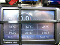 Przymocowałem urządzenie GPS do mocowania pakietu i ruszyłem w drogę. Slash 4x4 poruszał się szybko nawet mimo dodatkowej masy urządzenia GPS.